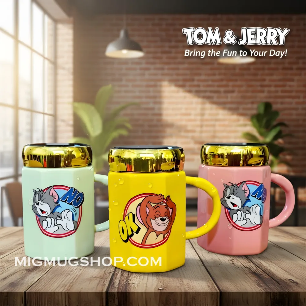 تام و جری همیشه یه حس نوستالژی شیرین دارن؛ ترکیبشون با درب آینهای طلایی باعث شده این ماگ هم بامزه باشه، هم شیک. هر رنگ و طرحش حال و هوای متفاوتی داره — از نسخههای روشن و بانمک گرفته تا طرحهای تیره و لوکس. جزئیات چاپ تام و جری روی بدنه با دقت و کیفیت بالا انجام شده تا در شستوشو از بین نره.